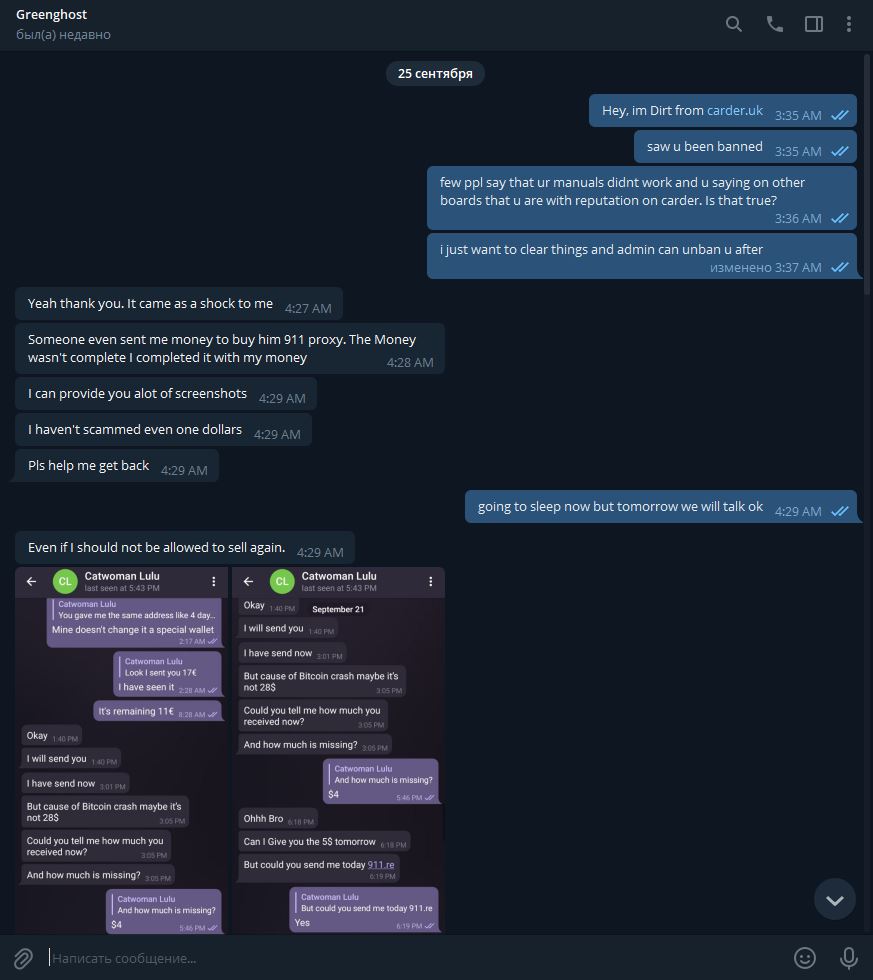 Sorry Greenghost but i will post our conversation on telegram. I think it need to be seen by Admin and if you have any other screenshots that you sent me on telegram as a proof, please post them here.