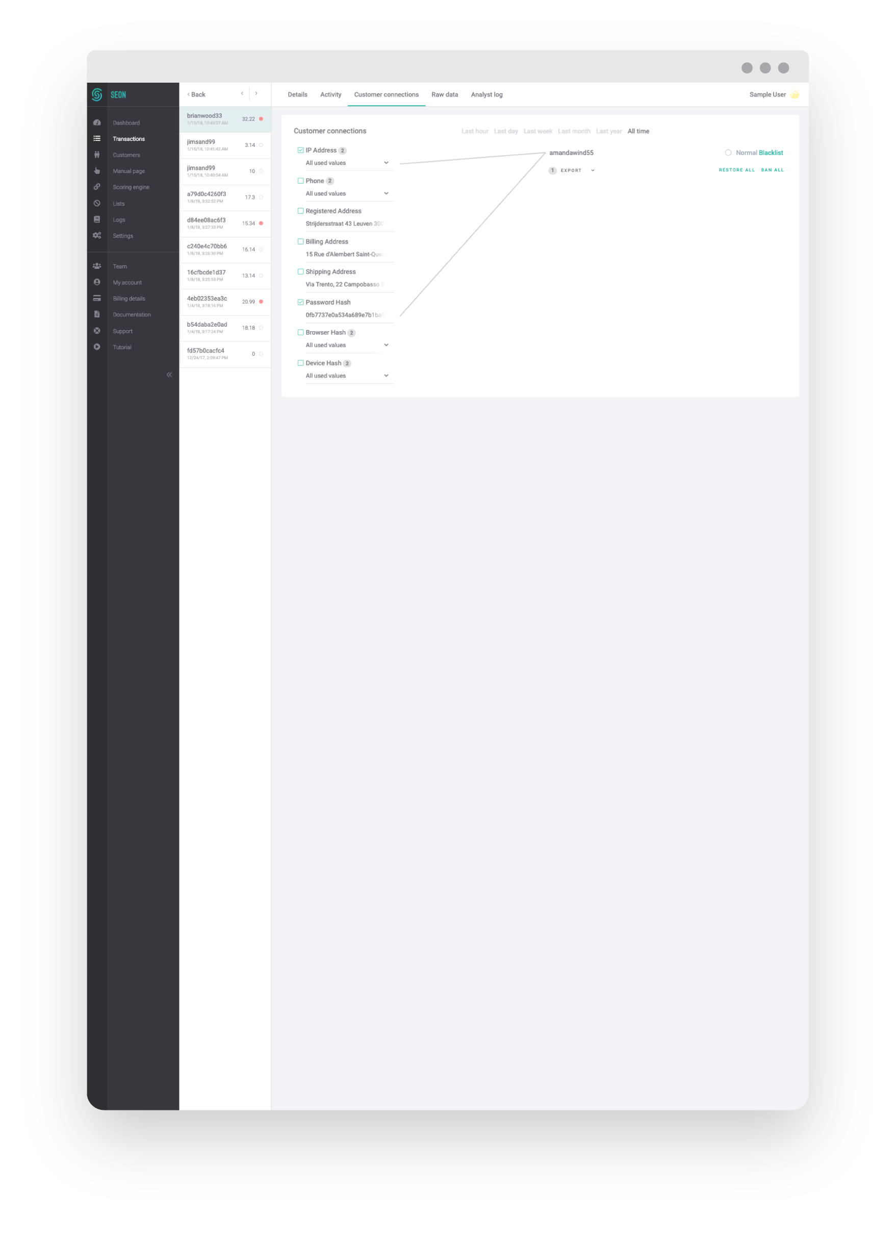 Помимо модуля отпечатков пальцев, у SEON есть ещё пучок гадких дополнений, среди них: