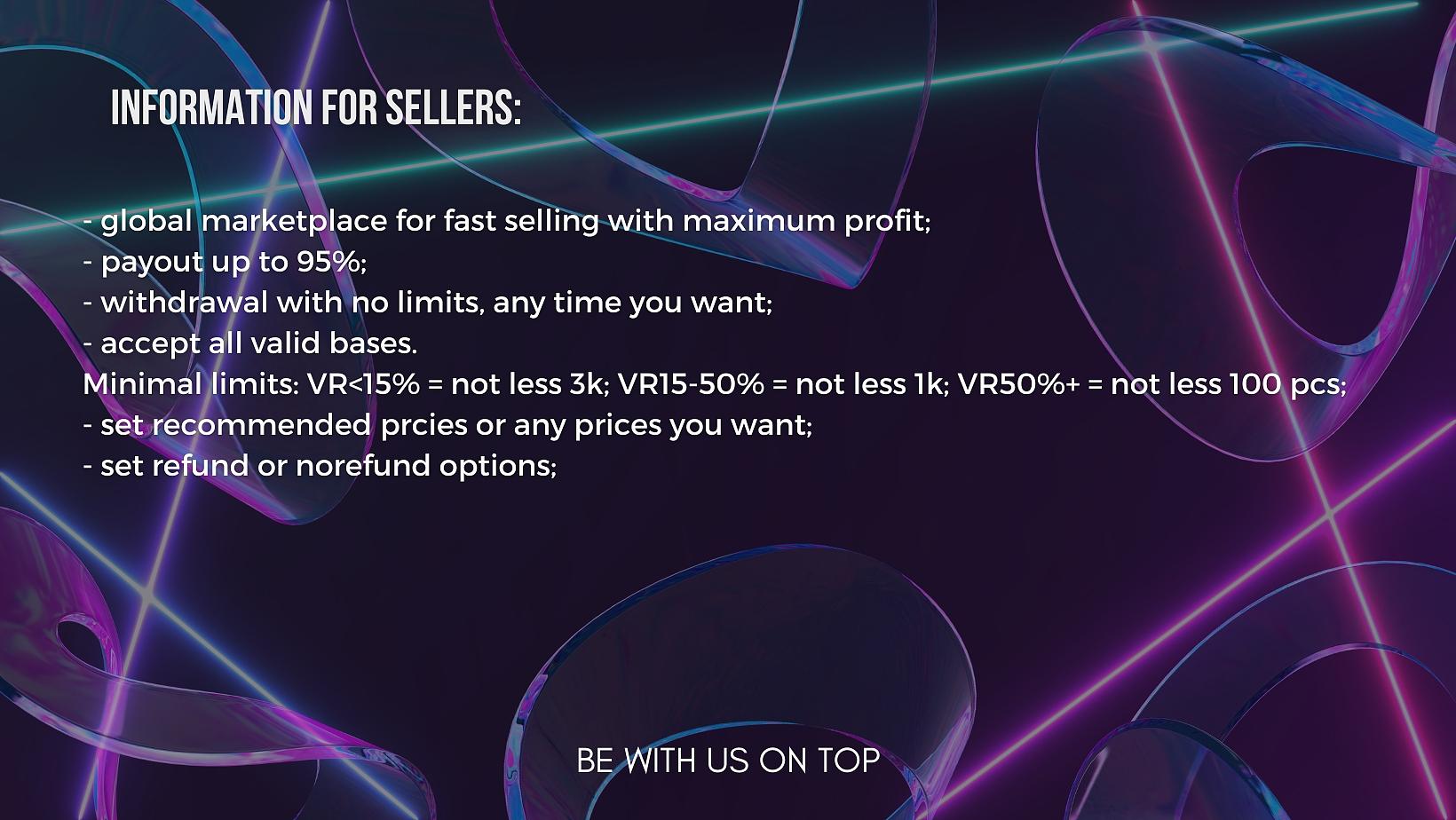 - accept all valid bases. Minimal limits: VR<15% = not less 3k; VR15-50% = not less 1k; VR50%+ = not less 100 pcs;
